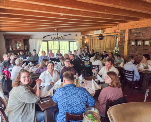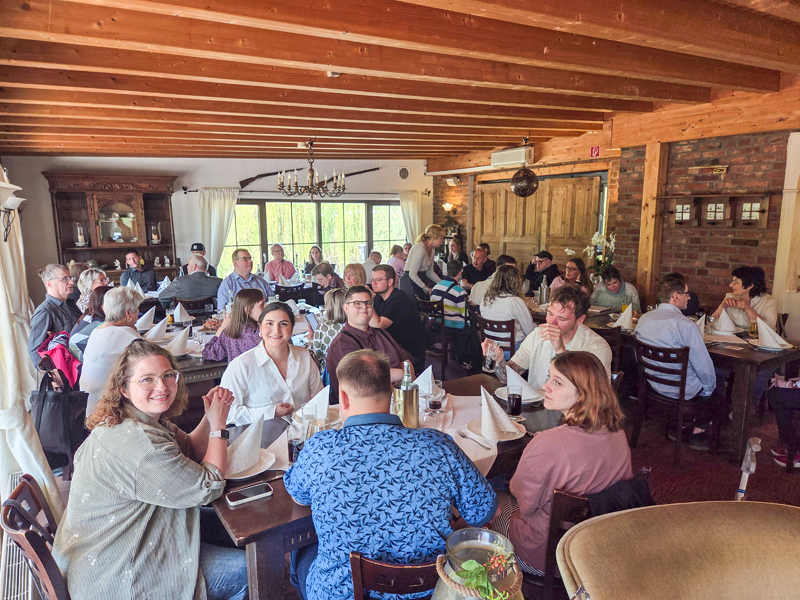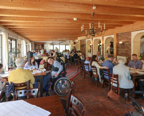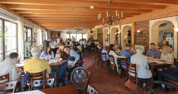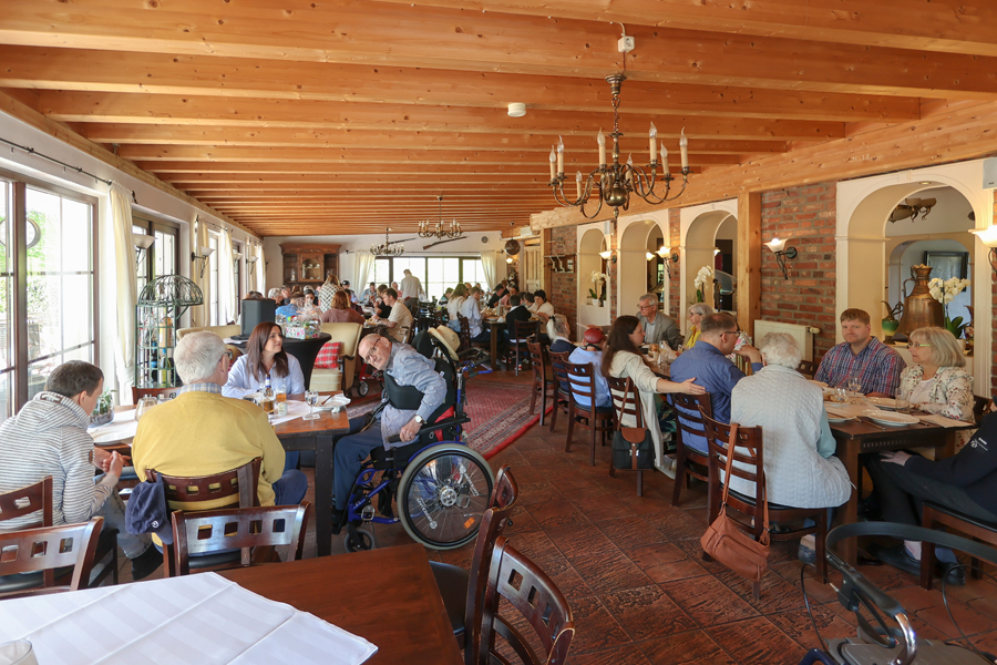 Bewohnerinnen und Bewohner, Mitarbeitende, Angehörige und Wegbegleiter trafen sich im Restaurant „Am Bolleberg“, um auf 40 Jahre zurückzublicken. Doch zunächst versammelte man sich für ein Gruppenfoto, um diesen besonderen Anlass festzuhalten.