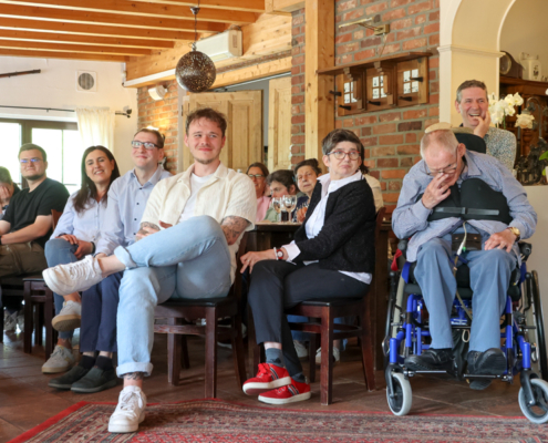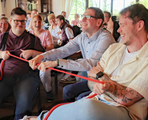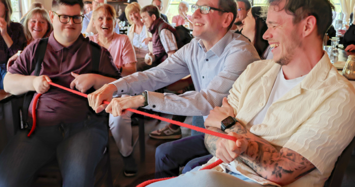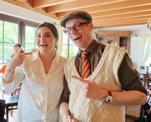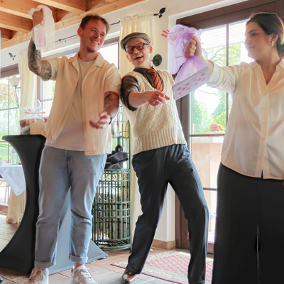 Ein festliches Essen bot in angenehmer Atmosphäre reichlich Gelegenheit zum Austausch. Es wurde gelacht, erzählt und das Miteinander genossen – ganz im Sinne der Wohnstätte, die seit 40 Jahren für Zusammenhalt und gelebte Teilhabe steht. Abgerundet wurde die Jubiläumsfeier zum Abschluss mit einer ganz besonderen Überraschung: Niemand Geringeres als der Zauberer Schmitz Backes sorgte mit seinen Kunststücken für staunende Gesichter und große Begeisterung.