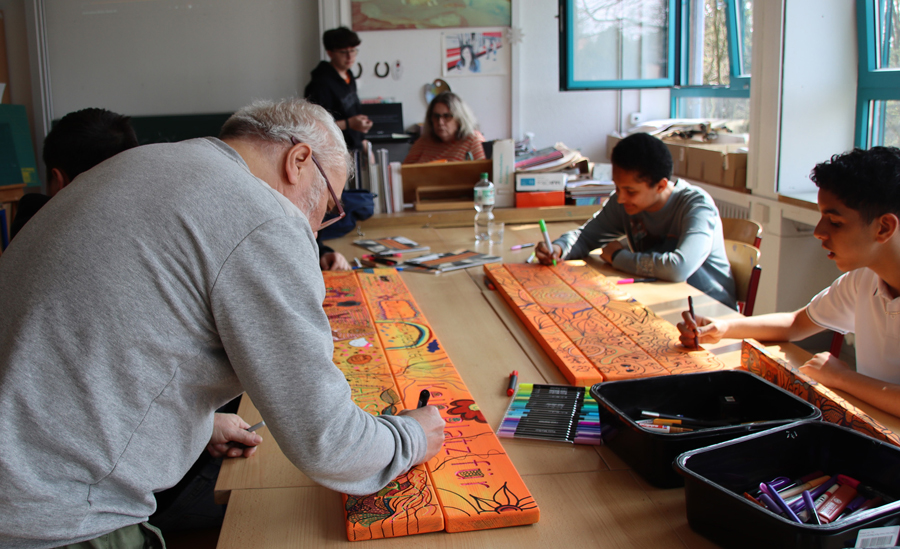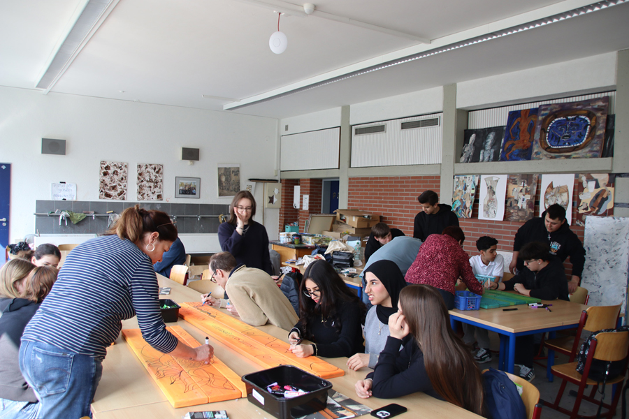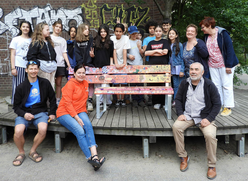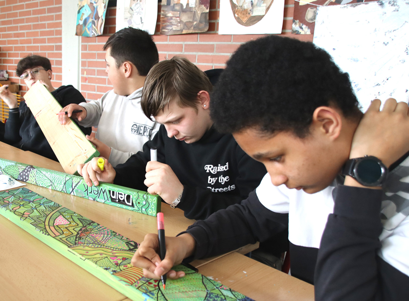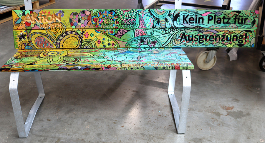 Im Rahmen eines zweitägigen Workshops wird zunächst in das Thema „Ausgrenzung“ und Diskriminierung eingeführt und ein Austausch angeregt. Teilnehmenden wird anhand von Beispielen außerdem präsentiert, welche Rolle Kunst für relevante politische und soziale Themen einnimmt. Anschließend stellen die Mitarbeitenden der Kunstgruppe Samocca gemeinsam mit Künstler Georg Kohlen und Betreuerin Gabi Jansen die Kunsttechnik „Zentangeln“ vor, die dann gemeinsam umgesetzt wird. Die Teilnehmenden gestalten eine „Bank gegen Ausgrenzung“ und setzen damit ein vielfältiges und noch auffälligeres Zeichen gegen Diskriminierung. Damit können Teilnehmende vielseitiges Hintergrundwissen, sowohl über das Thema Ausgrenzung als auch über Kunst, sammeln und sich beim Gestalten der Bank kreativ ausleben.