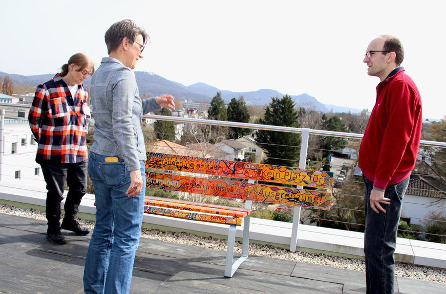 Im Rahmen des Förderprojektes Kultur ohne Barrieren startet die Lebenshilfe Heinsberg die Aktion „Kein Platz für Ausgrenzung“: Zentrales Element des Projektes ist eine hochwertige Sitzbank, die in der Schreinerei der DeinWerk gGmbH (in Trägerschaft der Lebenshilfe Heinsberg) produziert wird. Der Bank fehlt die rechte Sitzfläche, auf der Rückenlehne ist die Aufschrift “Kein Platz für Ausgrenzung“ eingefräst.