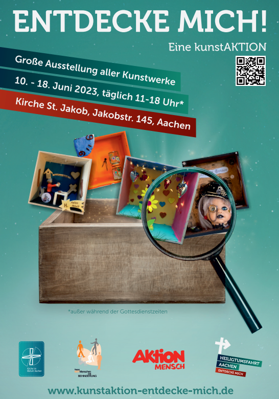 Die Ausstellung der Kunstwerke erfolgt während der Heiligtumsfahrt vom 10.-18. Juni 2023 – täglich von 11-18 Uhr in der Kirche St. Jakob, Jakobstraße 145 in Aachen.