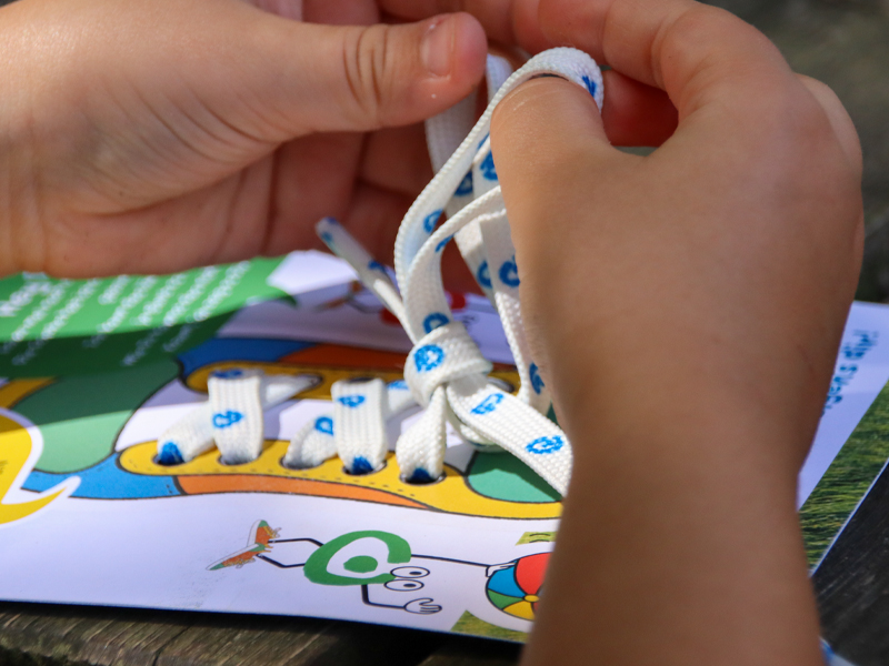 Das Schleifebinden ist eine wichtige motorische Schlüsselkompetenz für Kinder.