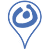 Logo eines Unternehmens, das Dienstleistungen im Bereich Standortdaten und Geoinformationen anbietet. Blaues Design mit symbolischem Standortmarker.